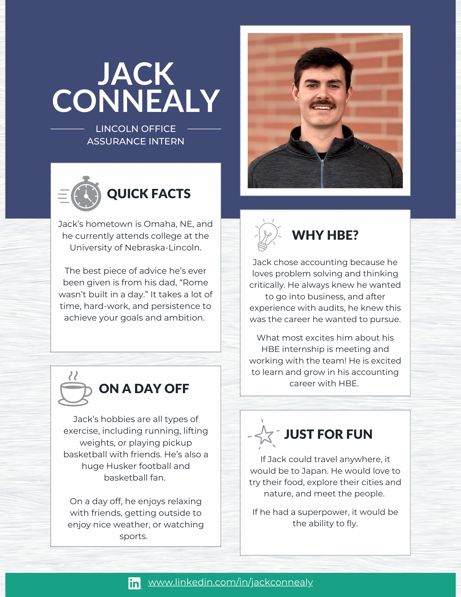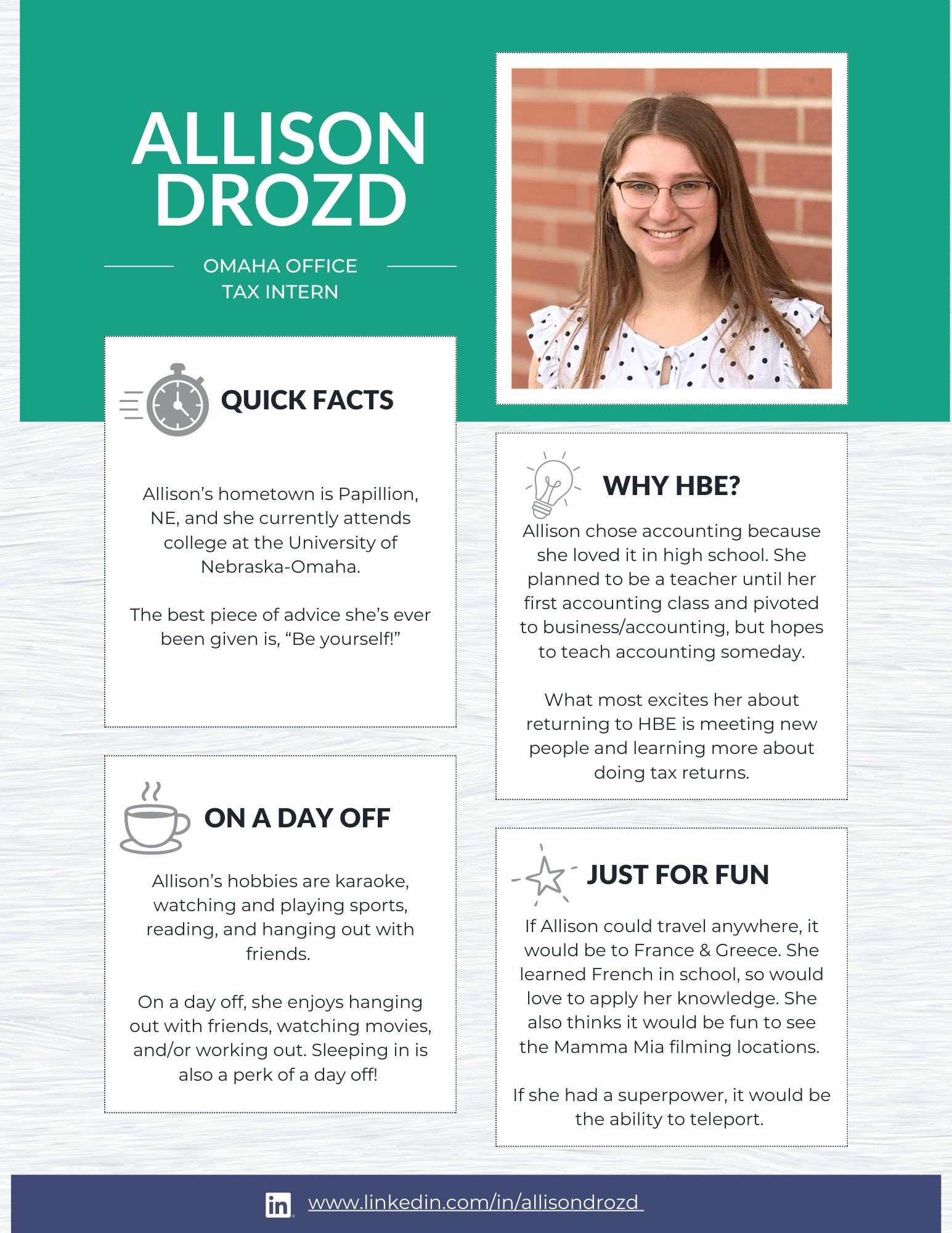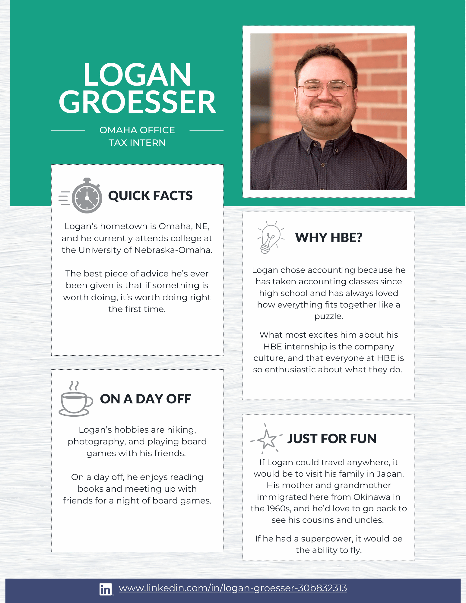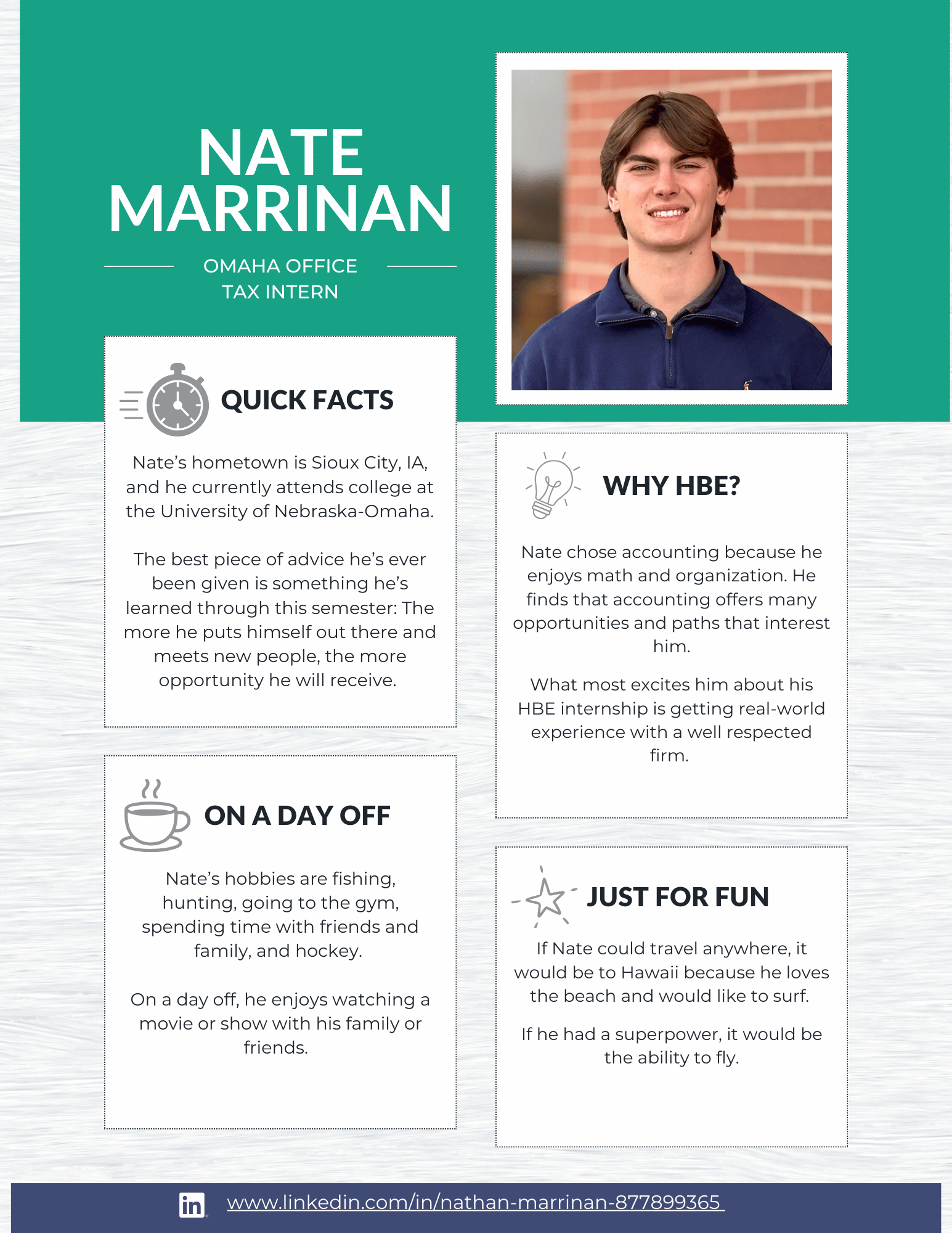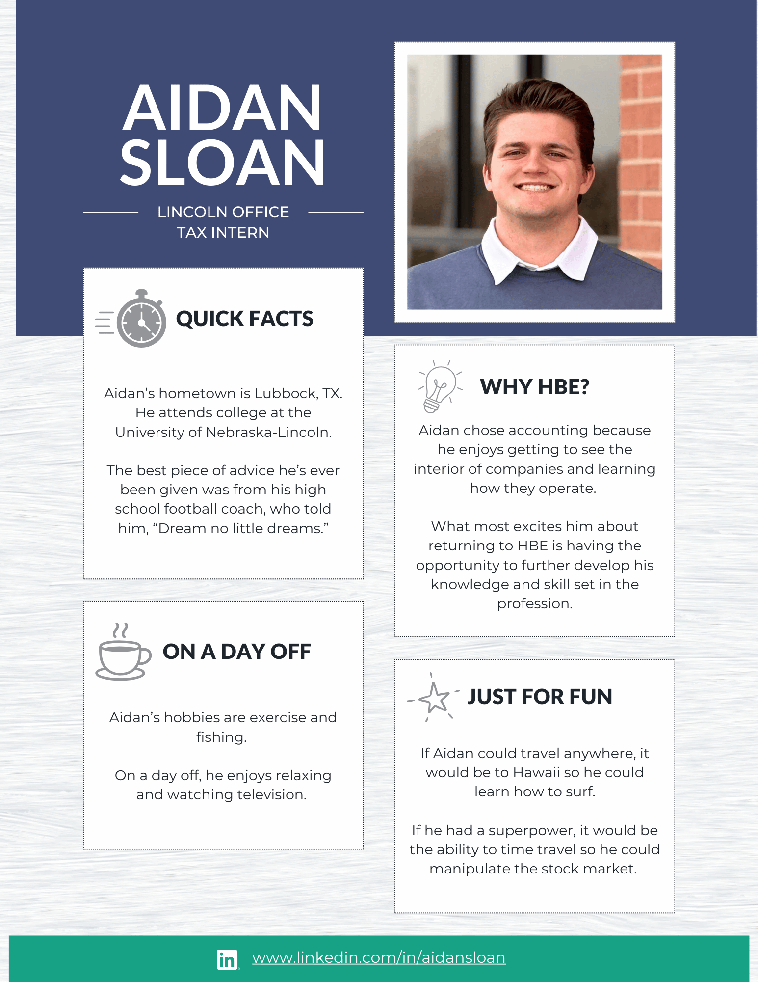 At HBE, our internship program is designed to give students meaningful, hands-on experience in audit, tax, and administration. From day one, our interns are immersed in real client work and take on many of the same responsibilities as our first-year staff. The result? Real learning, real experience, and a true understanding of what a career in public accounting looks like.